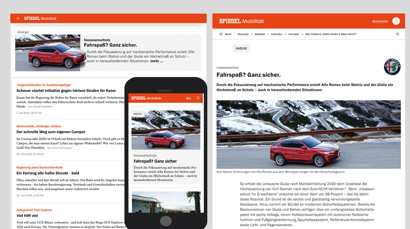 Mit über 81 Mio. AdImpressions und 29 Advertorial-Seiten erzielte die Kampagne für den Kunden Alfa Romeo einen besonders hohen Impact in der Zielgruppe. Eine begleitende Marktforschung belegte, dass die unterschiedlichen Markenimages von Alfa Romeo sich im Kampagnenverlauf stetig positiv veränderten.