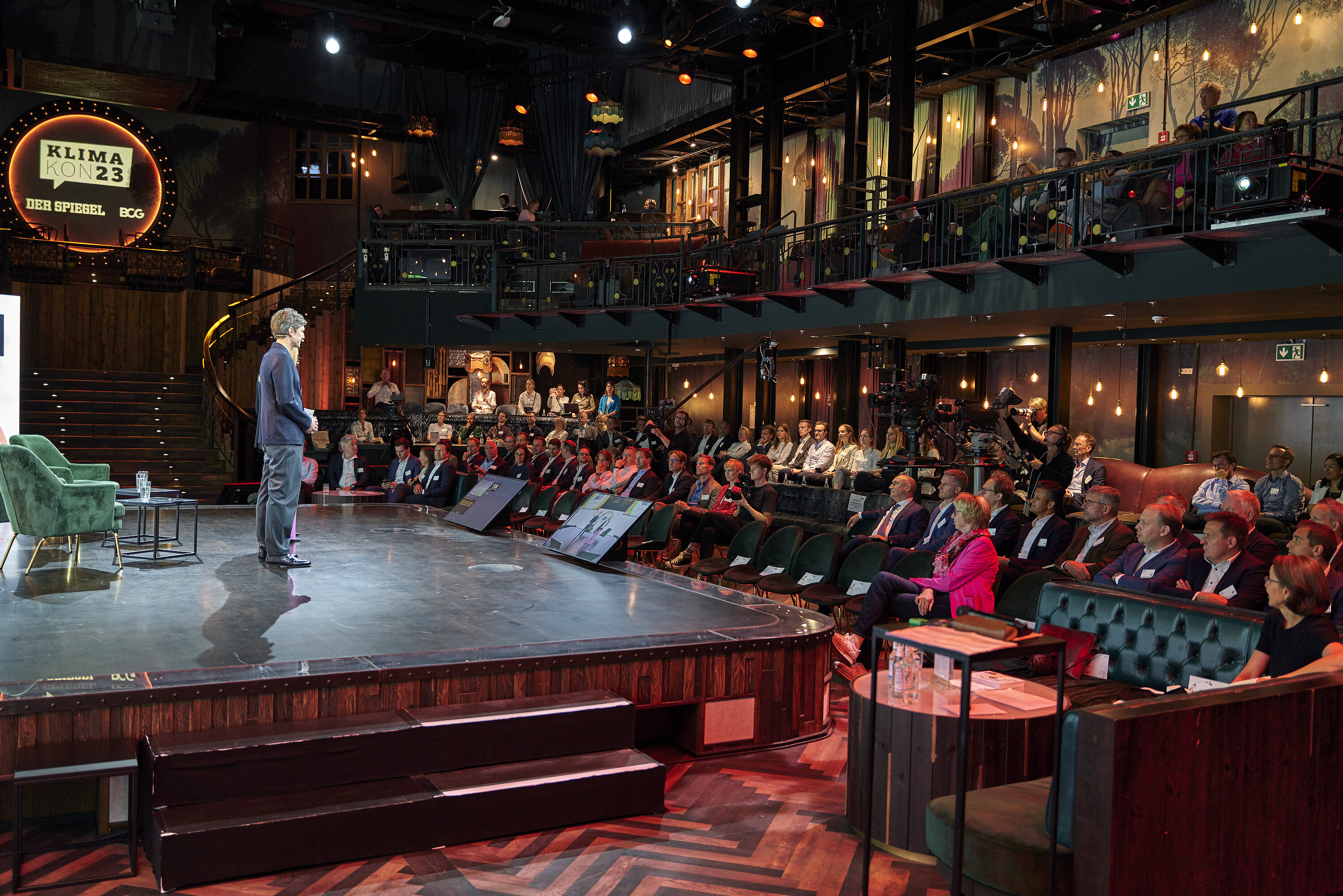 Am 19. September 2023 veranstalteten DER SPIEGEL und die Boston Consulting Group (BCG) zum vierten Mal die Klimakonferenz. Die diesjährige Veranstaltung stand unter dem Motto »Die grüne Transformation: Wie die Klimawende in Stadt, Mobilität und Industrie gelingen kann«. Gastgeberin Melanie Amann (stellvertretende Chefredakteurin DER SPIEGEL) und Michael Brigl (BCG) konnten eine Vielzahl prominenter Gäst:innen wie Robert Habeck, Cem Özdemir und Carla Hinrichs auf dem Podium begrüßen. Zusammen mit dem Kooperationspartner BCG war die MANUFAKTUR für die Konzeption und das Projektmanagement der Konferenz verantwortlich.