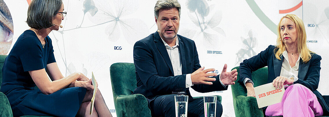 Wie erreichen wir die Klimaziele beim Wohnen, in der Ernährung und der Mobilität? Und wie kann Klimapolitik gleichzeitig auch gute Industriepolitik sein? Darüber diskutierten bekannte Gäst:innen wie Vizekanzler Robert Habeck, Landwirtschaftsminister Cem Özdemir, Sandrine Dixson-Declève (Präsidentin Club of Rome), Ökonomin Isabella Weber, Rolf Buch (Vorstandsvorsitzender Vonovia), Klimaaktivistin und Sprecherin der Letzten Generation Carla Hinrichs, Sigrid Nikutta (Vorstand Güterverkehr Deutsche Bahn), Philipp Schröder (Gründer von 1KOMMA5°), Andreas Schell (Vorstandsvorsitzender EnBW) und viele weitere spannende Persönlichkeiten auf dem Podium.