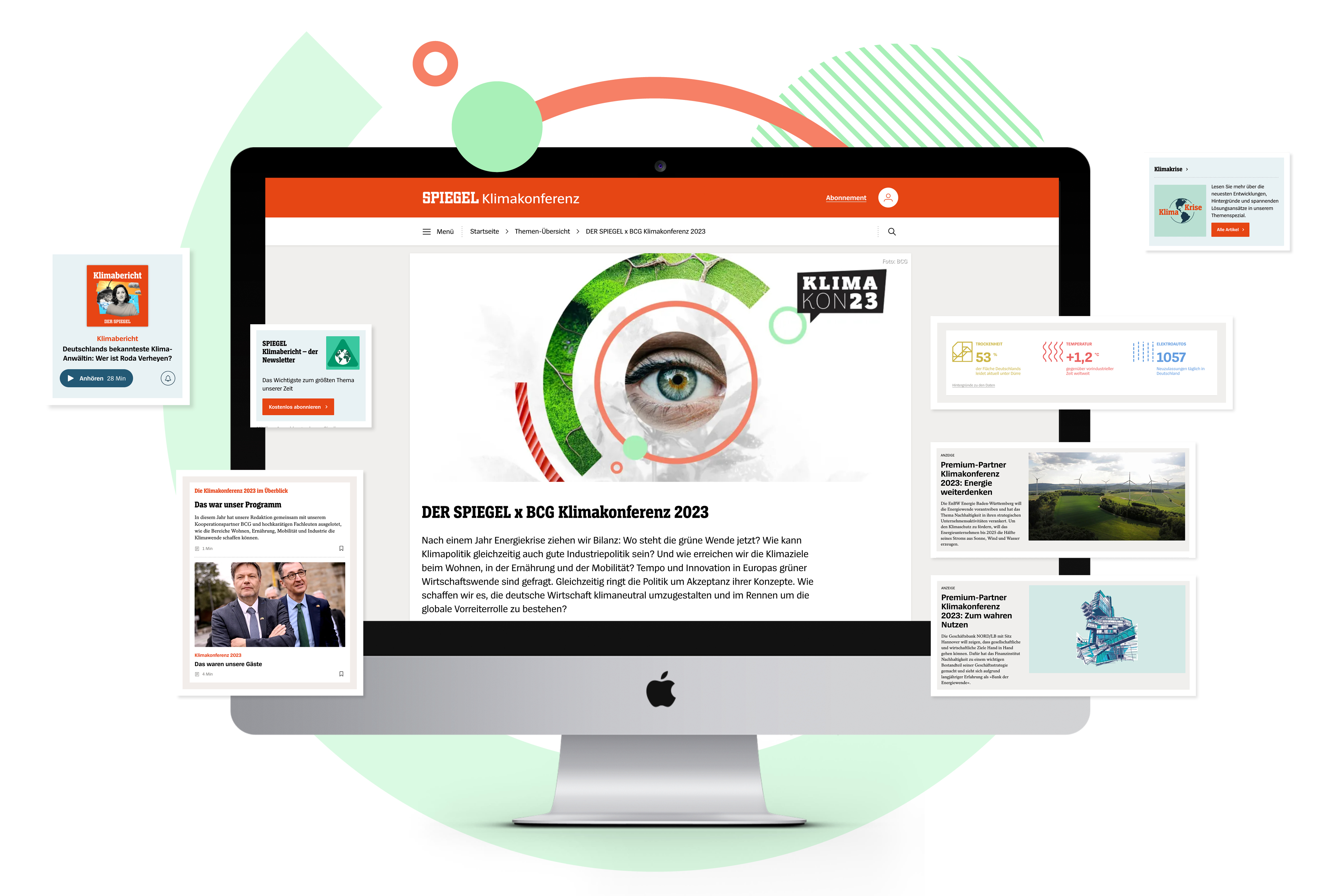 Alle Kooperationspartner wurden in die Kommunikationsmaßnahmen rund um die Klimakonferenz und zusätzlich mit einem Porträt auf der Themenseite auf SPIEGEL.de integriert. Auf der Themenseite zur Klimakonferenz fanden Nutzer:innen nützliche Informationen wie die Veranstaltungsagenda und eine umfangreiche Themensammlung rund um die Jahrhundertherausforderung Klimawandel.